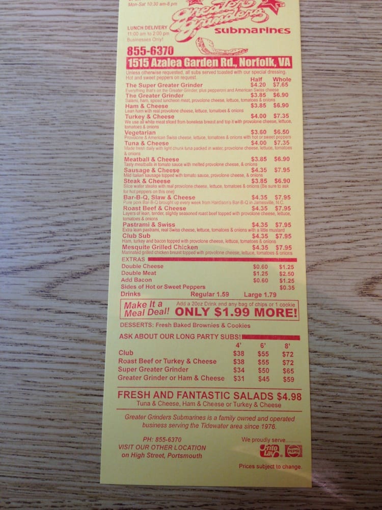 Greater Grinders Submarines Norfolk Menu (Update 2025)